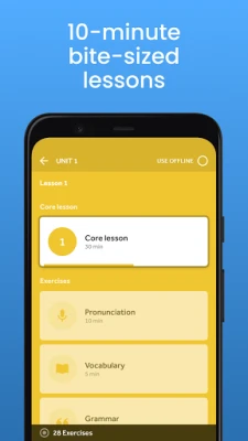 Take a 10-minute lesson anywhere, study online or off.